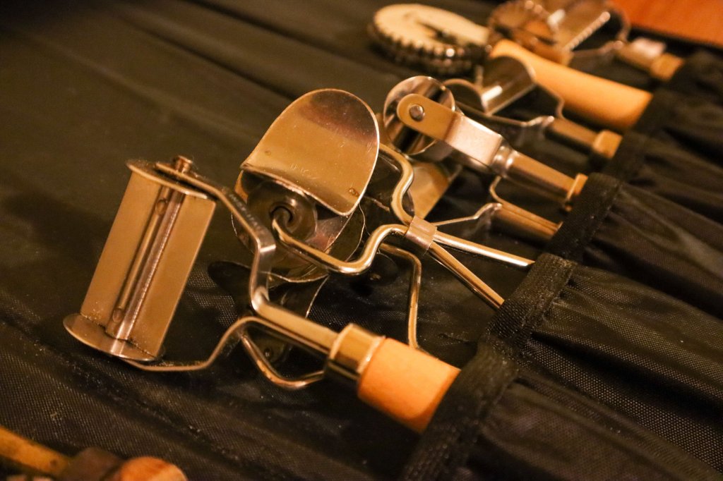In questa borsa che porto sempre con me durante i laboratori di cucina, c’è una cosa a cui tengo molto, c’è la rotella con cui mia nonna tagliava la sfoglia per fare i tortellini. Ho sempre pensato che questa grande passione per cucinare me l’abbia trasmessa proprio lei, mia nonna Emilia. Ho avuto la fortuna di trascorrere davvero molto tempo con lei, sempre lì a cucinare con una maestria unica, con una semplicità nei movimenti che a me incantavano.
