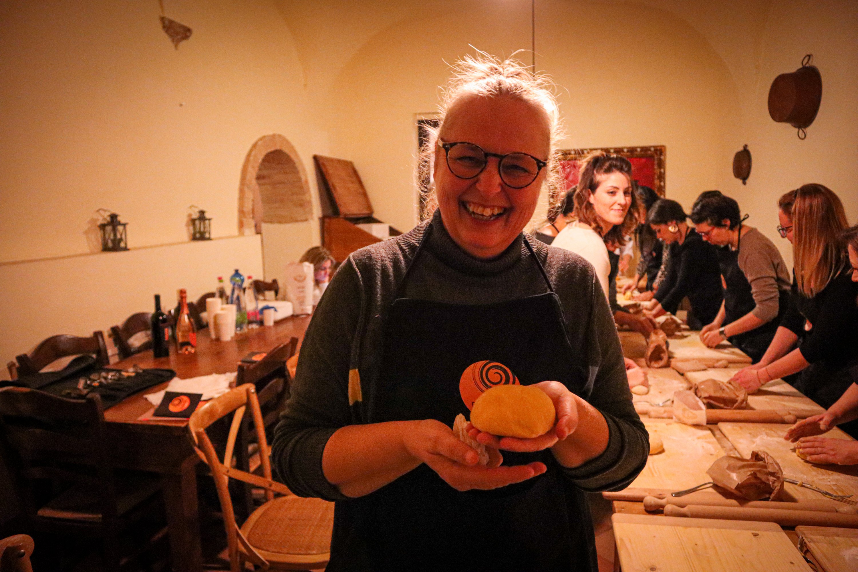 Martedì 4 febbraio il laboratorio sui tortellini si è svolto nella bellissima location dello showroom Ciú Ciú winery in Piazza del Popolo di Offida. È stato un grande piacere essere loro ospiti, come è stato un grande piacere conoscere altre 14 signore che hanno partecipato alla serata.