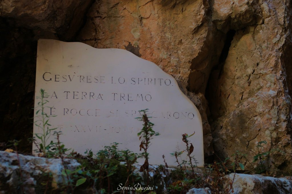 Mentre si scende verso la Chiesetta attraversando la montagna spaccata, si nota sulla destra, l’impronta della mano del Turco, un miscredente, che non credendo alla storia dell’origine della spaccatura della montagna, appoggiando la mano sulla roccia, gli rimane impressa li