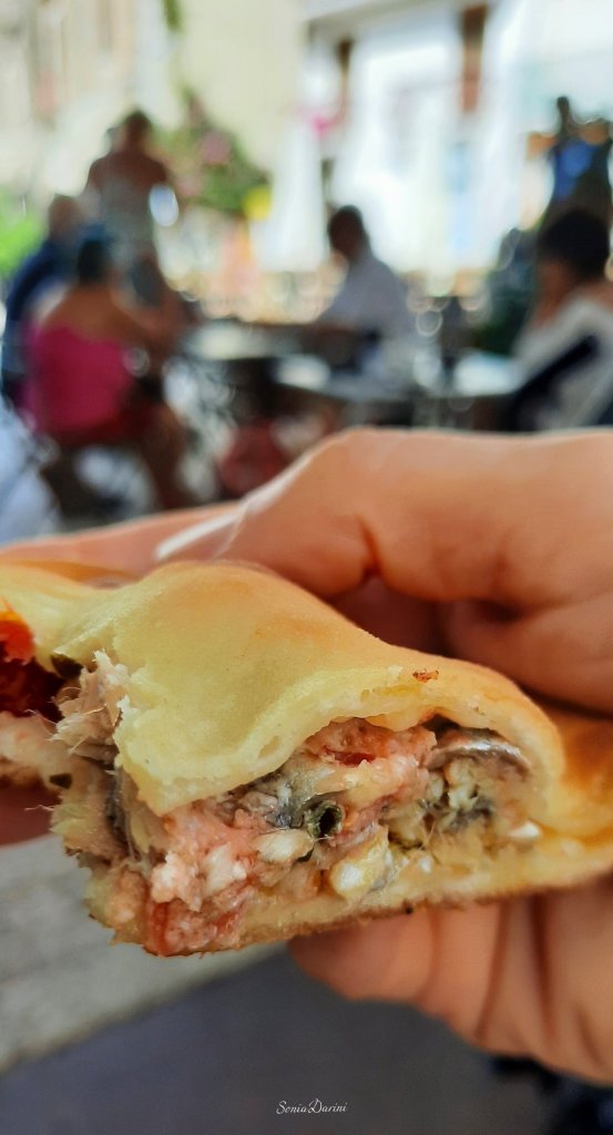 E mi raccomando!!! Non andate via da Gaeta senza aver assaggiato la tipica focaccia La tiella di Gaeta. Essenzialmente è composta da due dischi di pasta morbida, che custodiscono un ripieno preparato con ingredienti di terra o di mare.