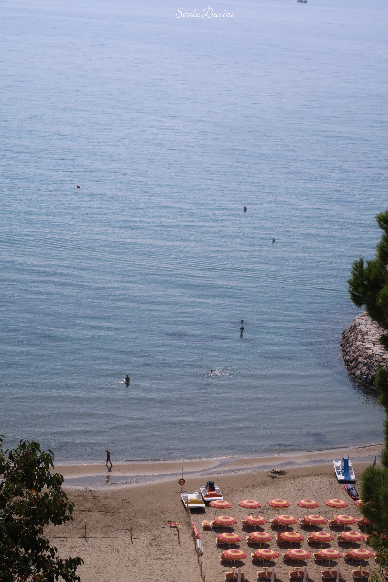 Per arrivare a Gaeta da Sperlonga, si percorre una litoranea molto suggestiva, dall’alto si notano piccole spiagge e promontori che al primo furtivo sguardo fanno già innamorare. In una piccola piazzola ci siamo fermati all’imbocco di una scaletta che arriva alla spiaggia dei 300 gradini.