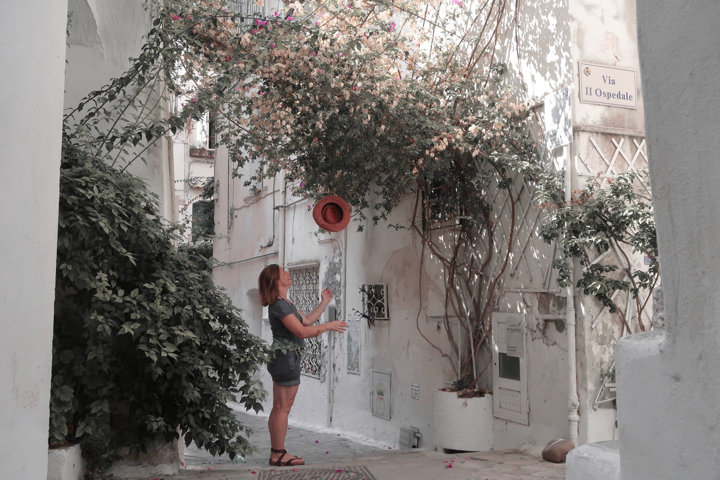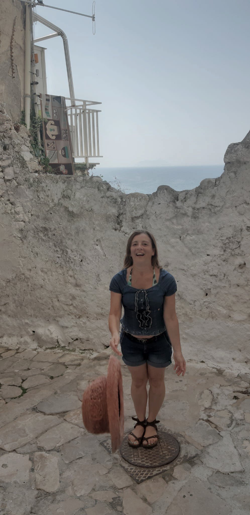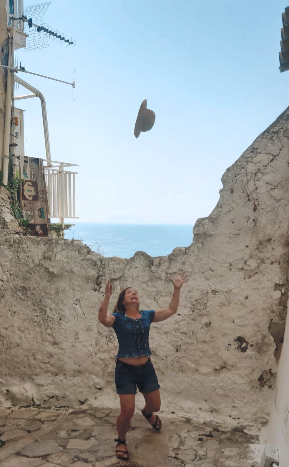 Girovagando tra le piazzette, le strette vie, le case bianche, non posso fare a meno di notare il mare con i suoi colori meravigliosi. Non posso fare a meno di giocare con il cappello di paglia che porto sempre in vacanza, non posso fare a meno di sentirmi completamente immersa in questa atmosfera