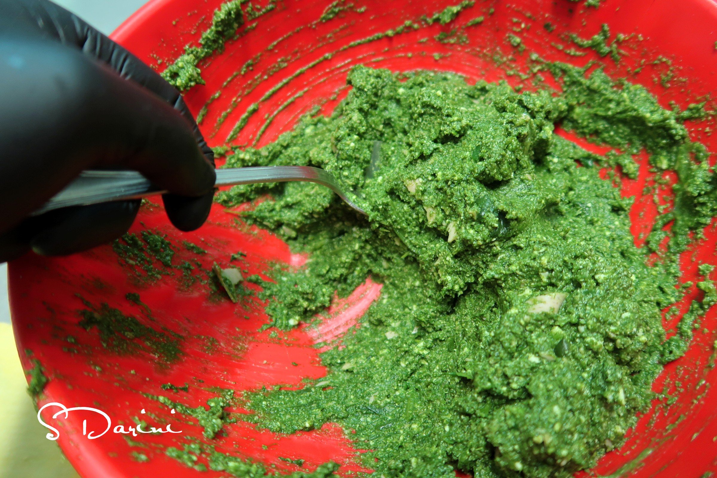 Pulire e sciacquare bene gli spinaci. Scottarli leggermente e farli freddare. Tritare insieme alla mortadella, aggiungere il parmigiano, il burro sciolto e i rossi d’uovo. Mescolare tutto insieme e regolare di sale.