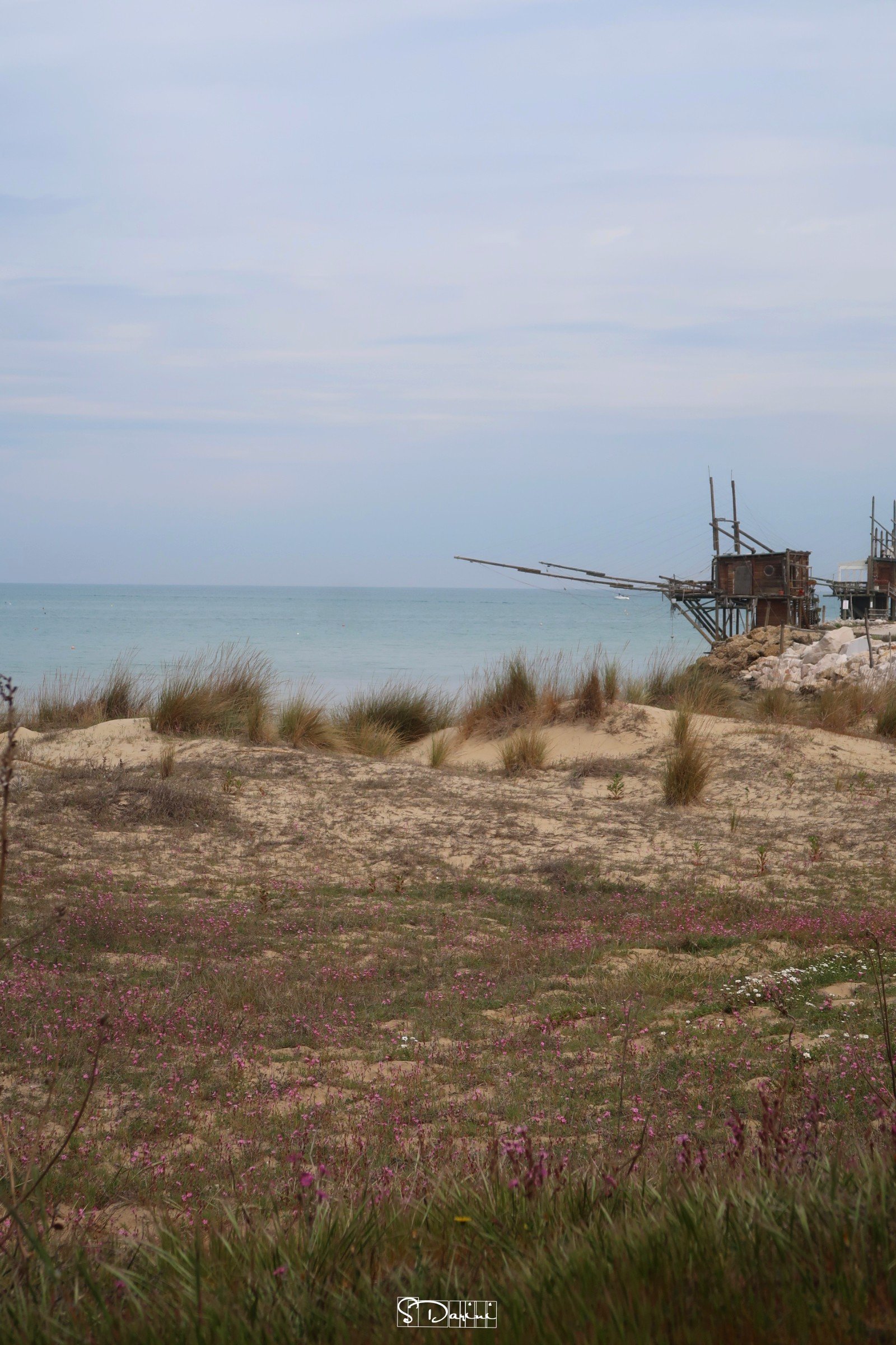 Siamo in un tratto di costa che è compreso in una Riserva Naturale Regionale: Punta Aderci. Un luogo a dir poco magnifico, con spiagge tra le più belle d’Italia. Scopriamo per la prima volta queste acque, queste spiagge con dune, sabbia bianca e fine, con tanta vegetazione e tanta fauna; ci sono diverse specie protette. Il silenzio è interrotto solo dal ronzio delle api, che indisturbante, saltano da un fiore all’altro.
