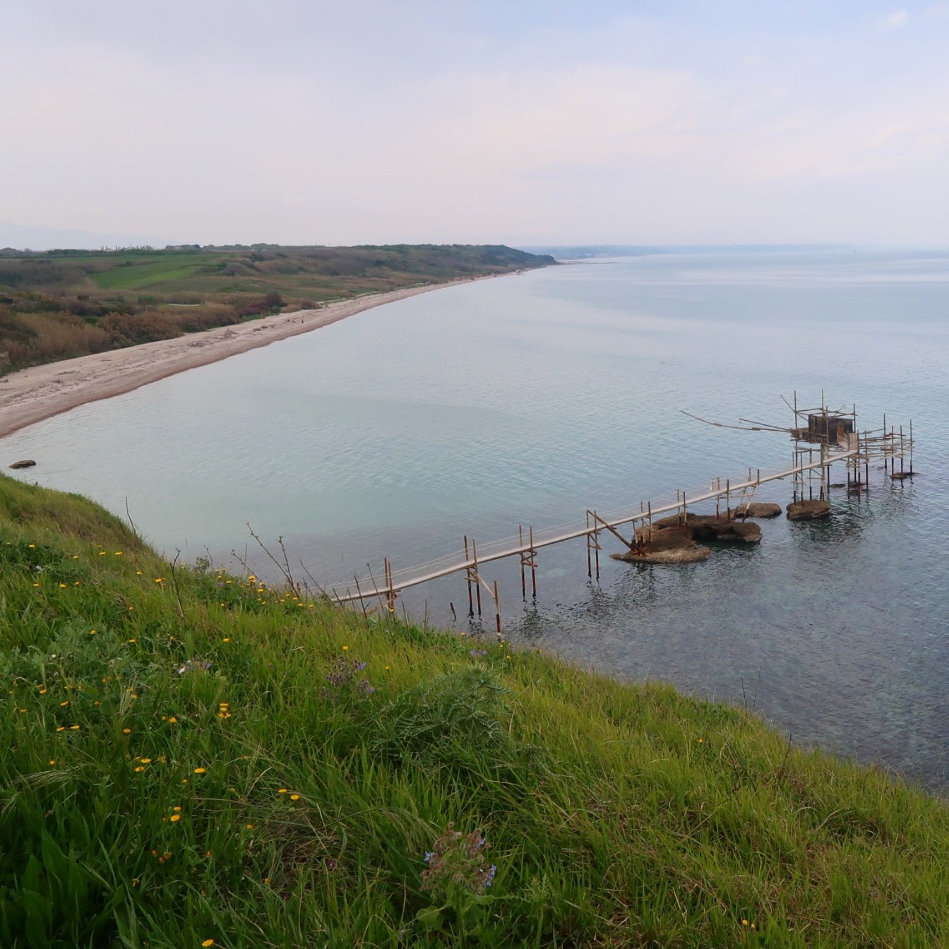 È un paesaggio che colpisce, diverso e inusuale dal mare di casa. Si cammina sulla spiaggia fino a salire sul promontorio di Punta Aderci, altezza 26 mt sul livello del mare. Qui la vista è ampia, da una parte il mare, dall’altra le campagne verdeggianti fino a raggiungere la Maiella.