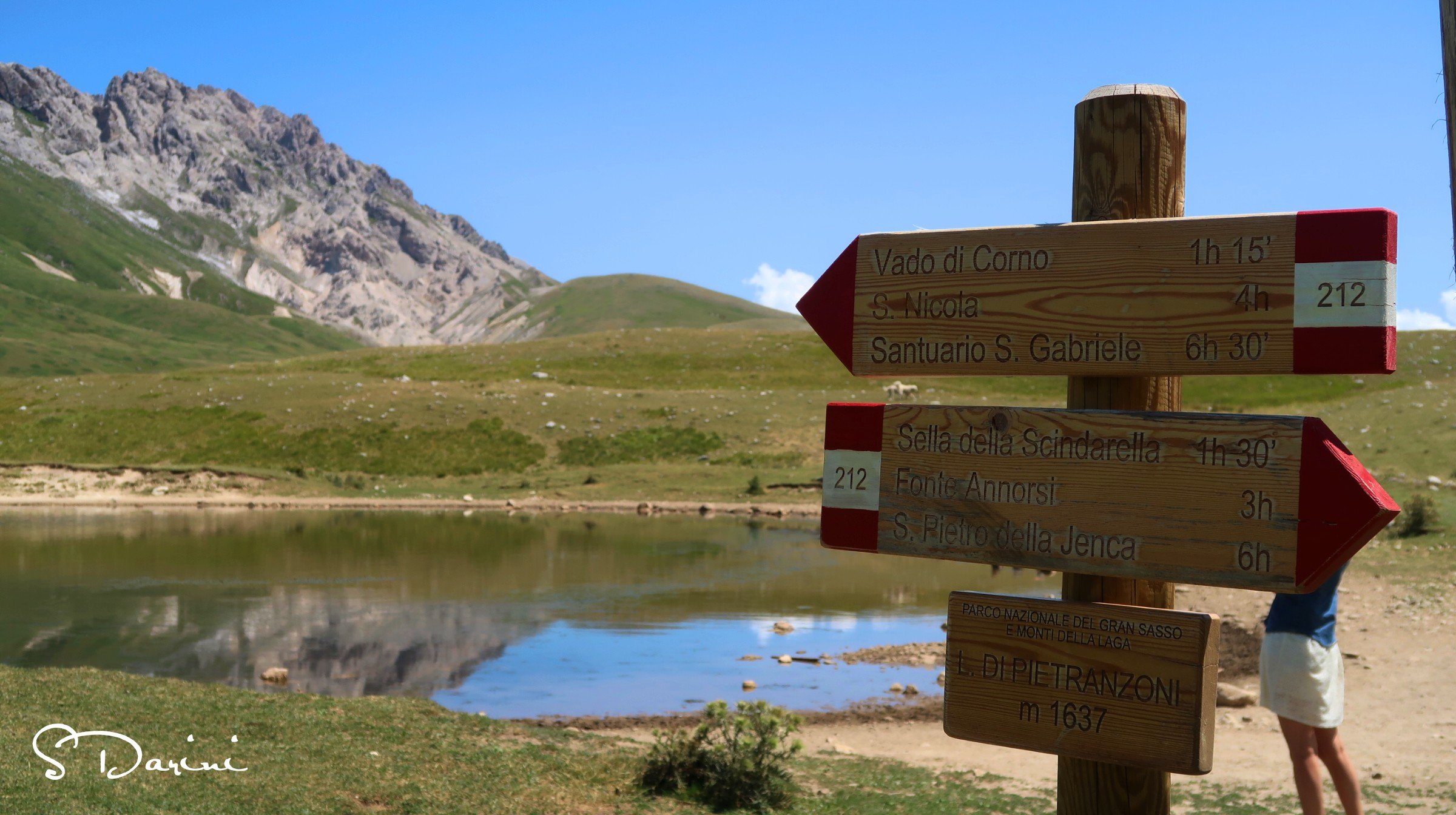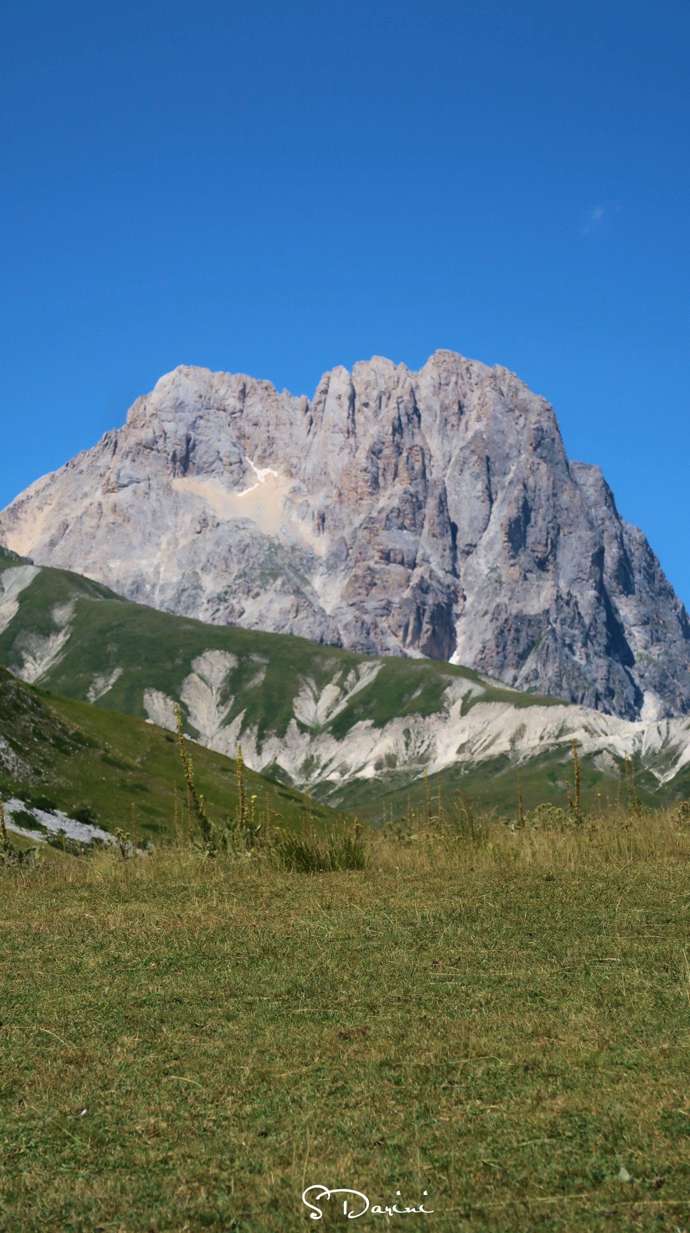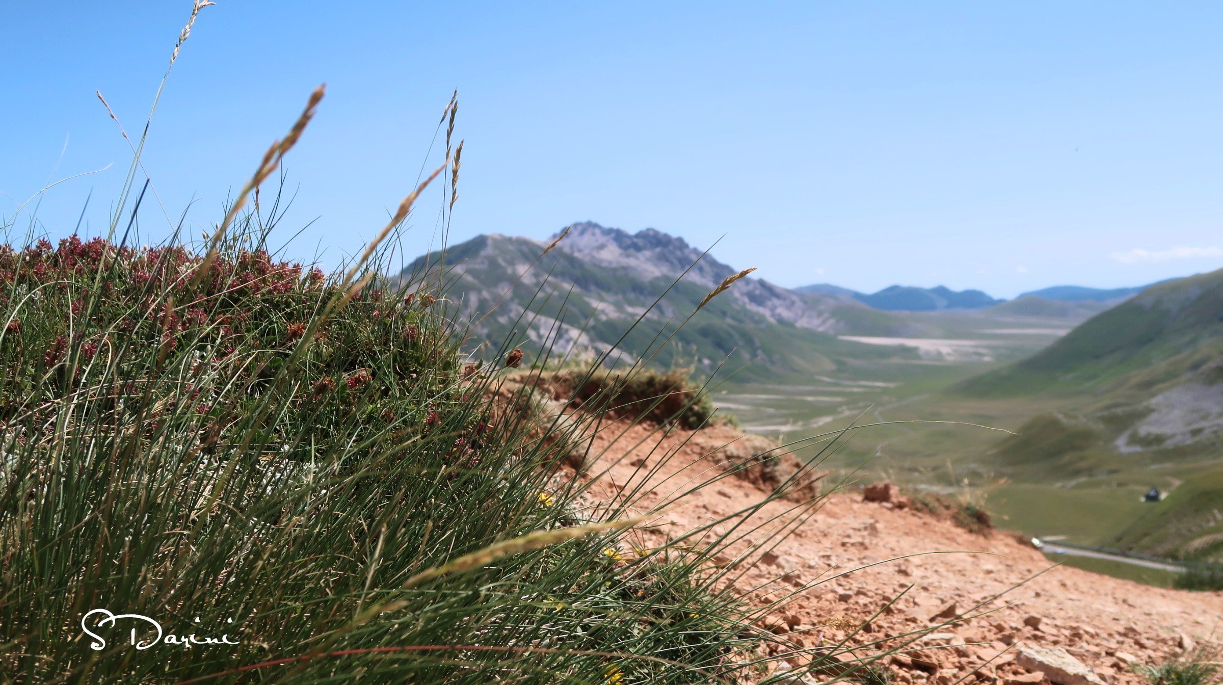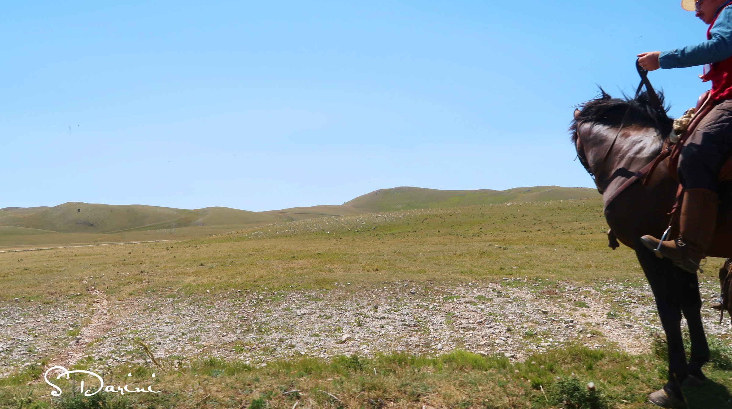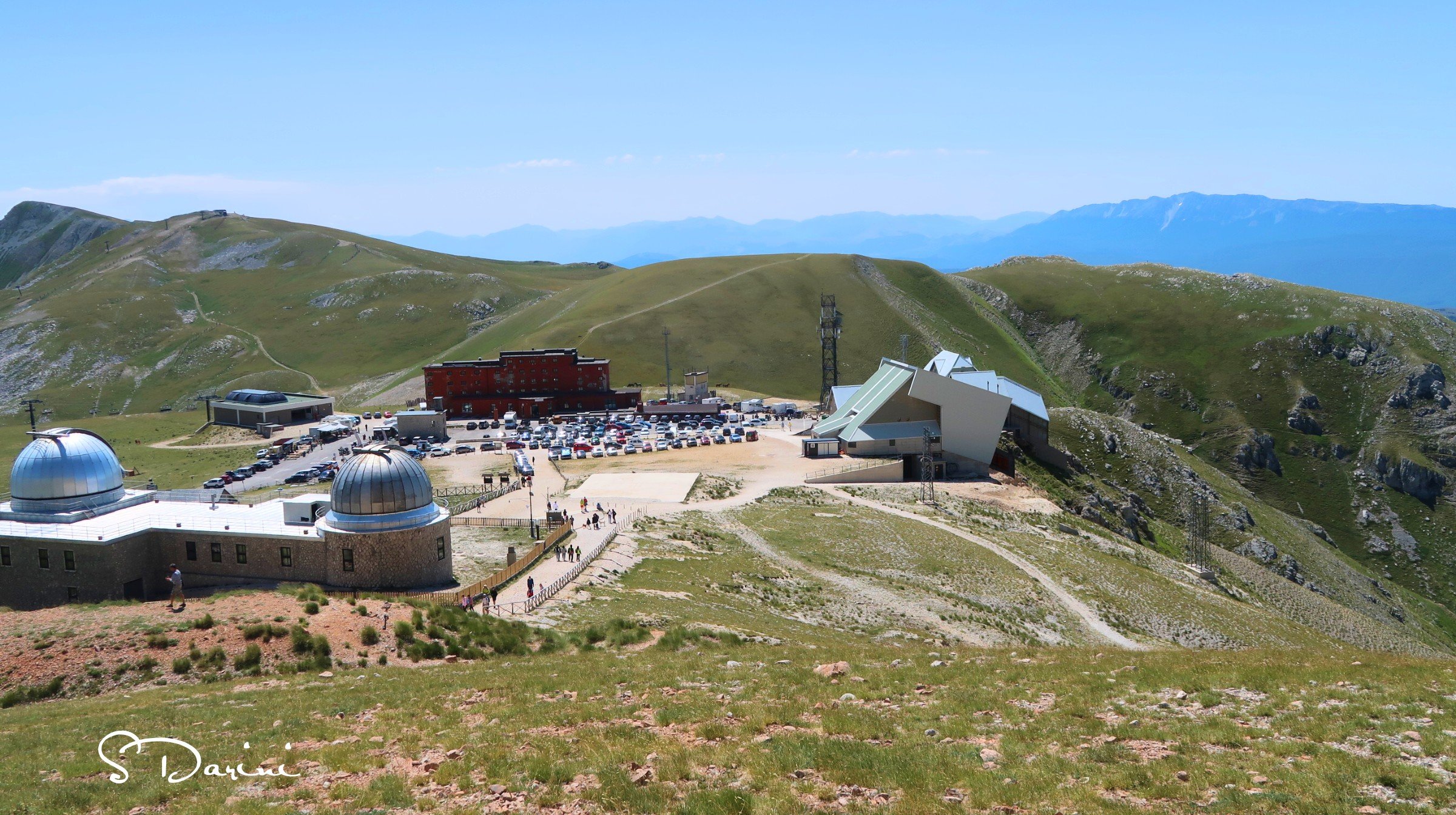 La strada per raggiungere campo Imperatore si fa sempre più stretta e curvosa, il guidatore deve fare molta attenzione a non farsi distrarre dallo scenario che sta attraversando, è lo scenario di un film. Ad un certo punto non si sa più dove guardare, mucche al pascolo, laghetti, greggi di pecore con pastore e in cima lo spettacolo più emozionante, i cavalli, tanti ma davvero tanti, immobili ad osservarci mentre noi li osserviamo, nella loro immensa grazia di movimento; i puledri che prendono il nutrimento dalle loro mamme, lo stallone attento ad ogni movimento. A fare da padrone su tutto il vento, oggi fresco e forte, ma assolutamente gradevole dopo la grande afa di questi giorni.
