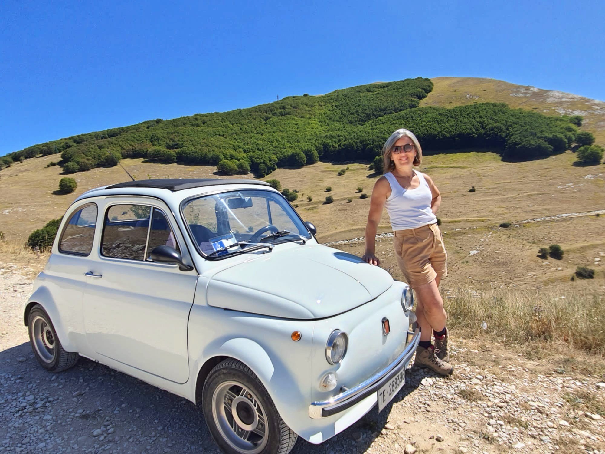 Il giro di oggi, lunedì 29 agosto 2021, è breve. Non abbiamo molte ore a disposizione per arrivare alla vetta e non ci va nemmeno di correre. Abbiamo voglia di gustarci il panorama, il cielo è terso, il mare in lontananza sembra così vicino quasi di riuscire a toccarlo, a sentirne il profumo. Insomma la giornata perfetta!! Partiamo da bivio San Giacomo, passando per il vallone fino ad arrivare al laghetto, purtroppo completamente asciutto ed arido. Li ci viene voglia di gridare, di saltare, tanta è l’energia che trasmette questo luogo. E lo facciamo, gridiamo, saltiamo, ci divertiamo❤ Al ritorno, una 500 tutta bianca ci attende per completare il book fotografico del luogo….sempre con il desiderio di tornare per completare il giro!!