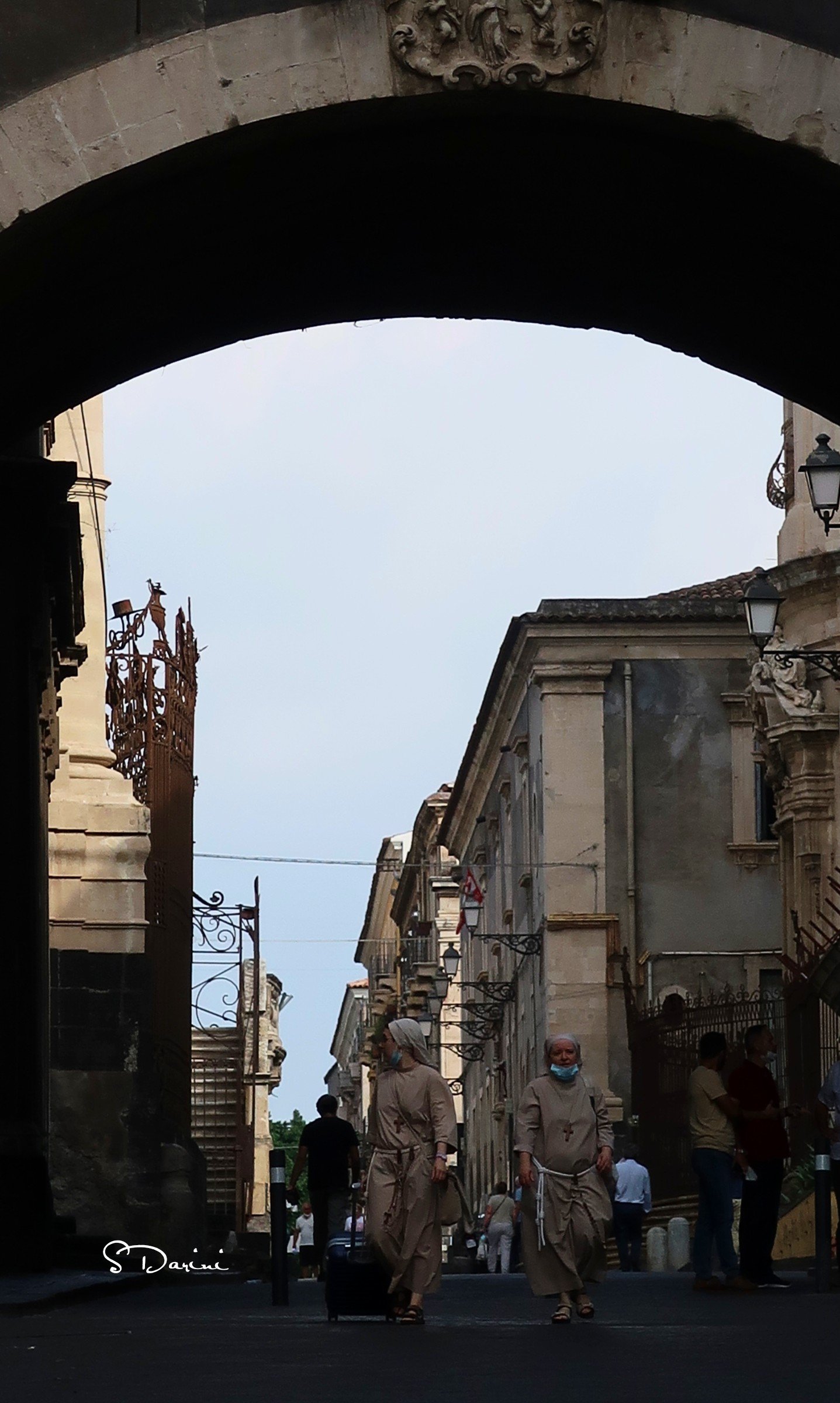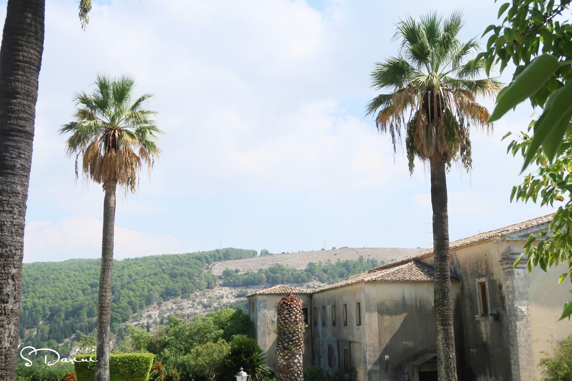Il tragitto che collega queste due città della Sicilia sud orientale, attraversa campagne sapientemente lavorate. Sembra un disegno la campagna qui. Case basse, architettura essenziale, muretti a secco delimitano i confini dei terreni. La terra è scura, piante di mandorlo, carrubi secolari, bassi vigneti, arance. Si percepisce aria di tranquillità, di pace.