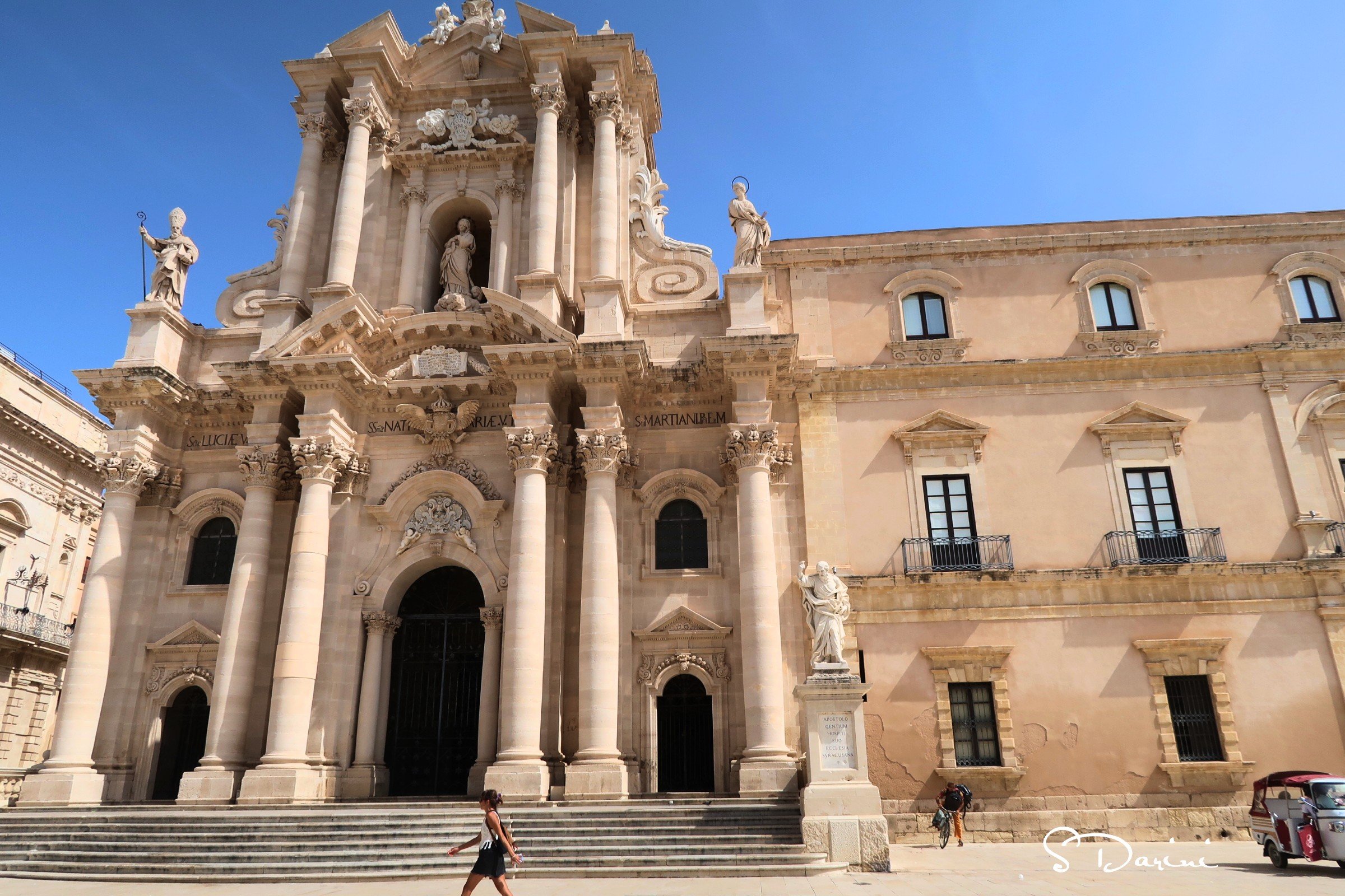 Il primo giorno, domenica, dopo una ricca colazione, con la macchina presa a noleggio, ci dirigiamo verso Siracusa. Durante il breve viaggio non si può fare a meno di vedere le immense distese di piante di arance e fichi d’india. Abbiamo voglia di goderci questo viaggio lentamente senza affannarci a vedere troppe cose e male. Per questo motivo a Siracusa visiteremo Ortigia. Ortigia è il toponimo dell’isola che costituisce la parte più antica della città di Siracusa.