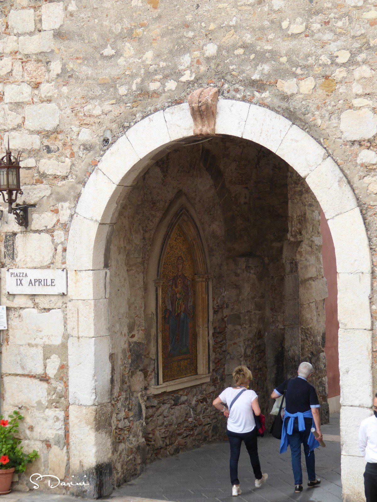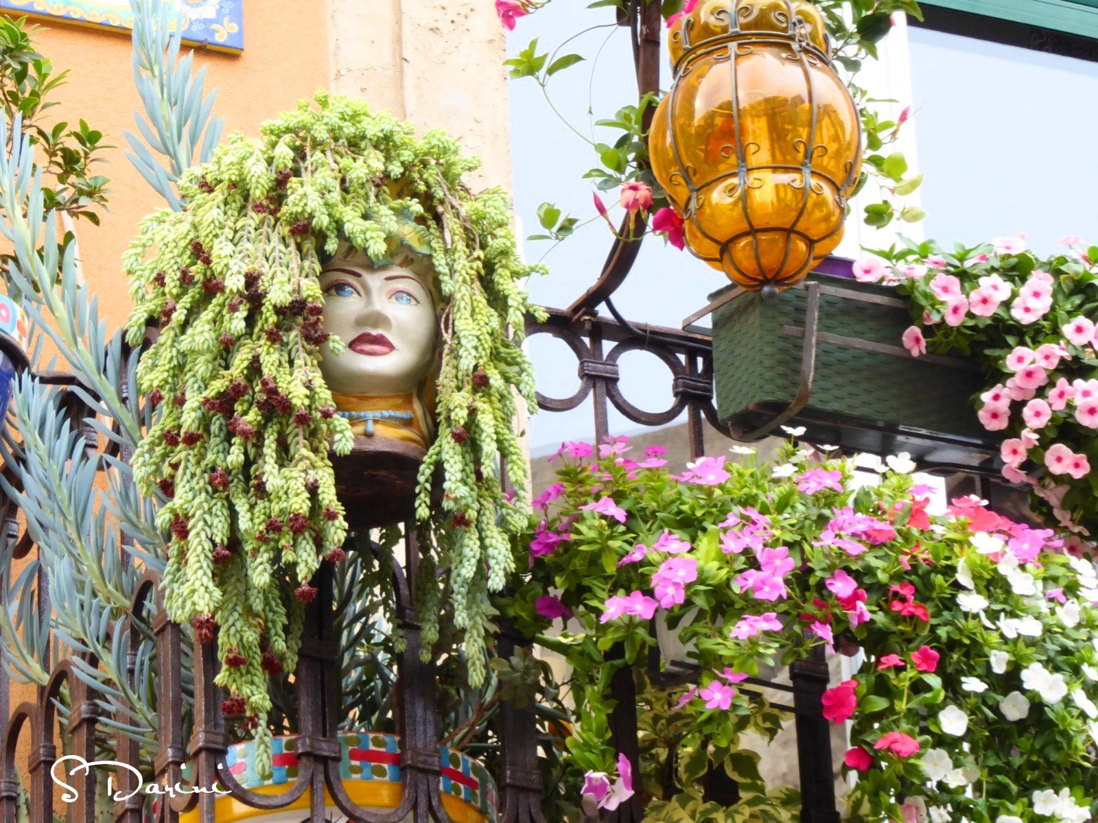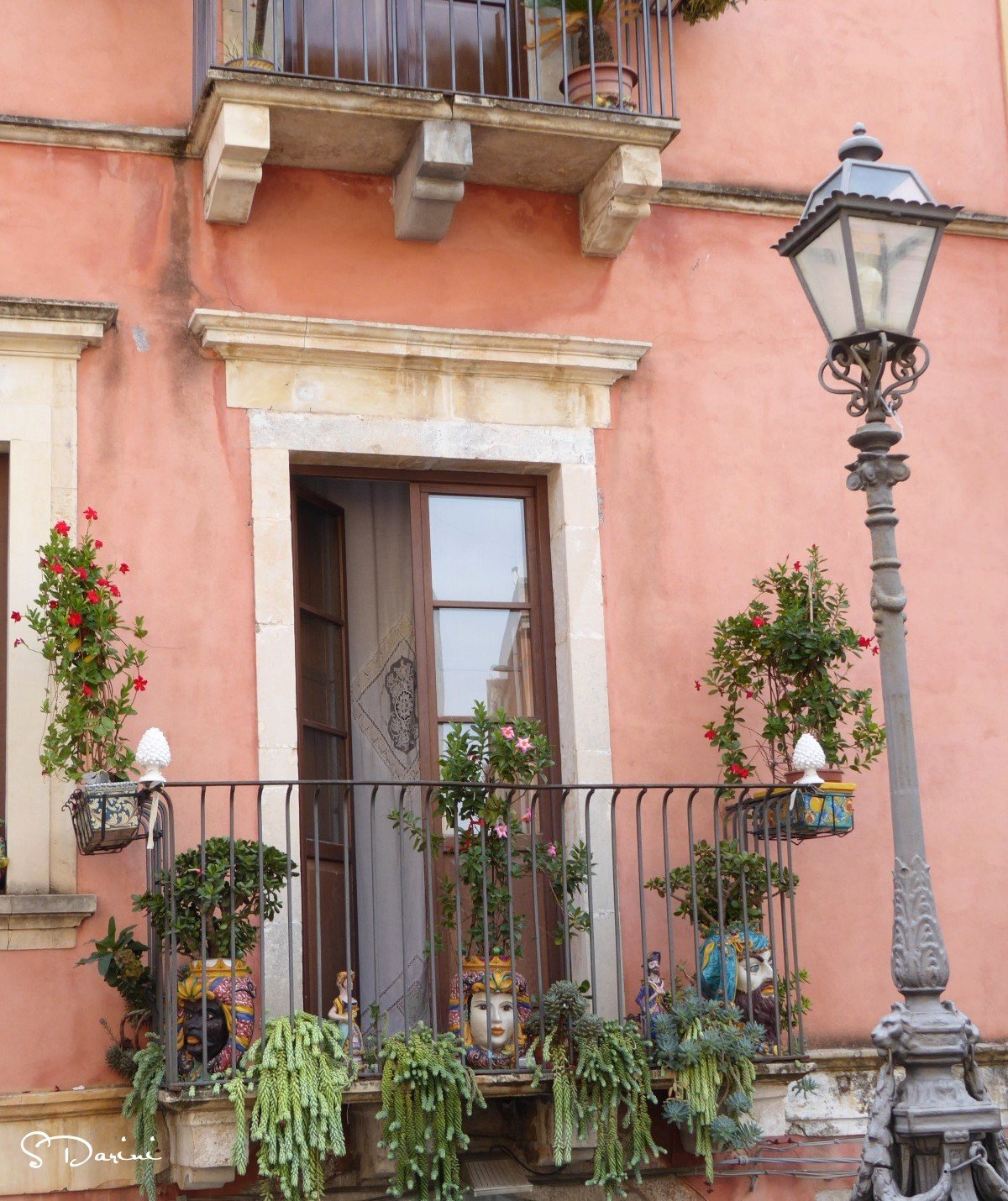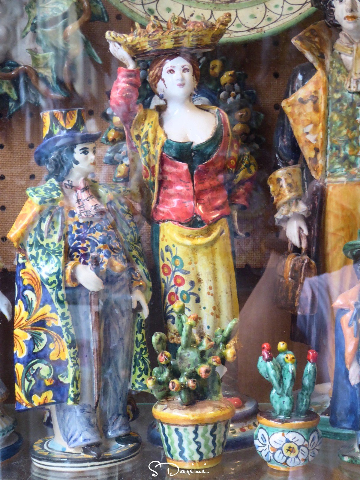 Ma quello che mi ha colpito di più di Taormina è la gente!! Affollata di turisti di ogni nazionalità. Camminando attraverso la via dello struscio, il corso, si ha la possibilità di ascoltare parlare in molte lingue, osservare le gesta e i colori dei vestiti e i negozi di ogni genere. È in una pasticceria che ci sediamo per una breve pausa. Mangiando una granita con la brioche ad osservare il passeggio e delle simpaticissime signore sedute al tavolo affianco così perfettamente colorate dalla testa ai piedi. Giriamo ancora un po tra i stretti vicoli , tra le pareti delle case addobbate di ceramiche di ottima fattura e terrazze ricche di piante verdi e rigogliose. Prima di ripartire scattiamo la nostra cartolina ricordo.