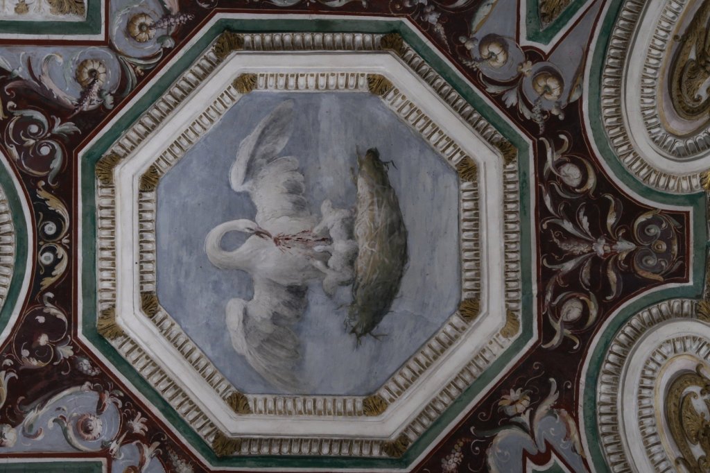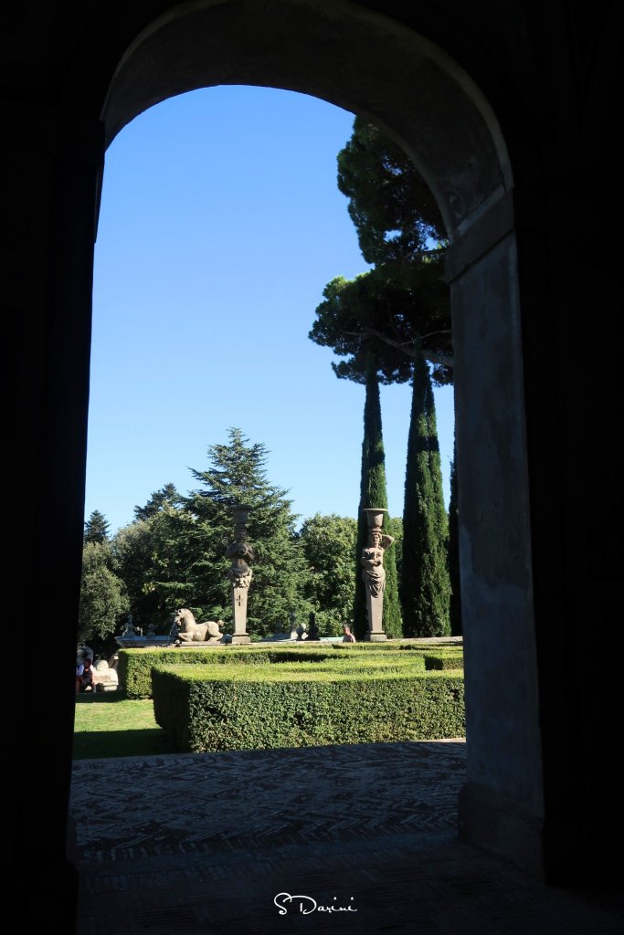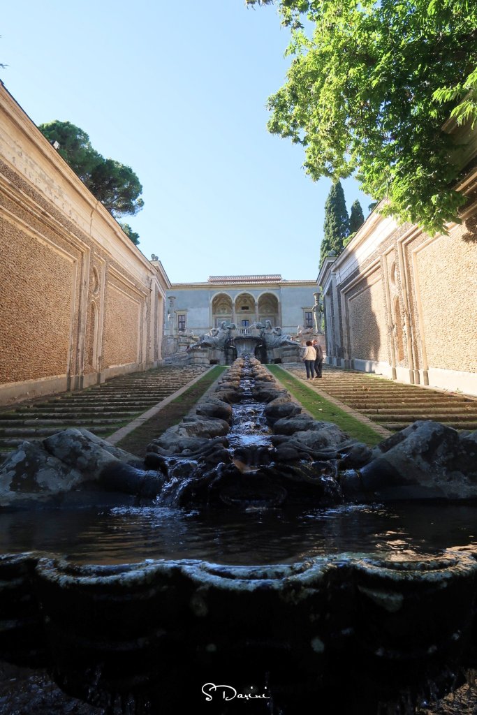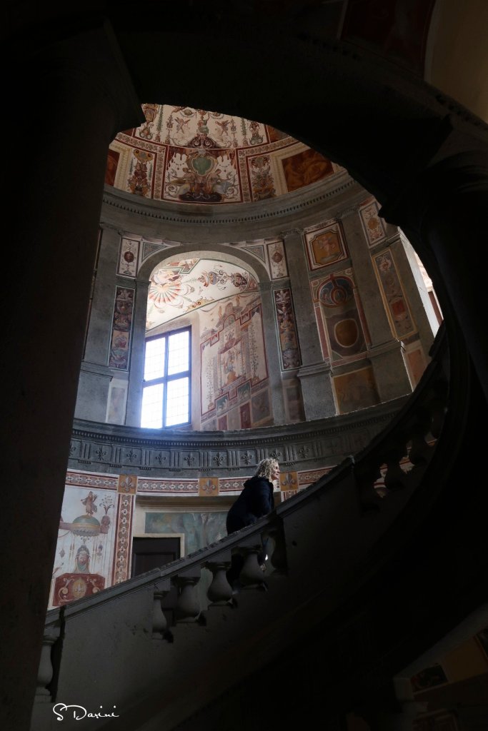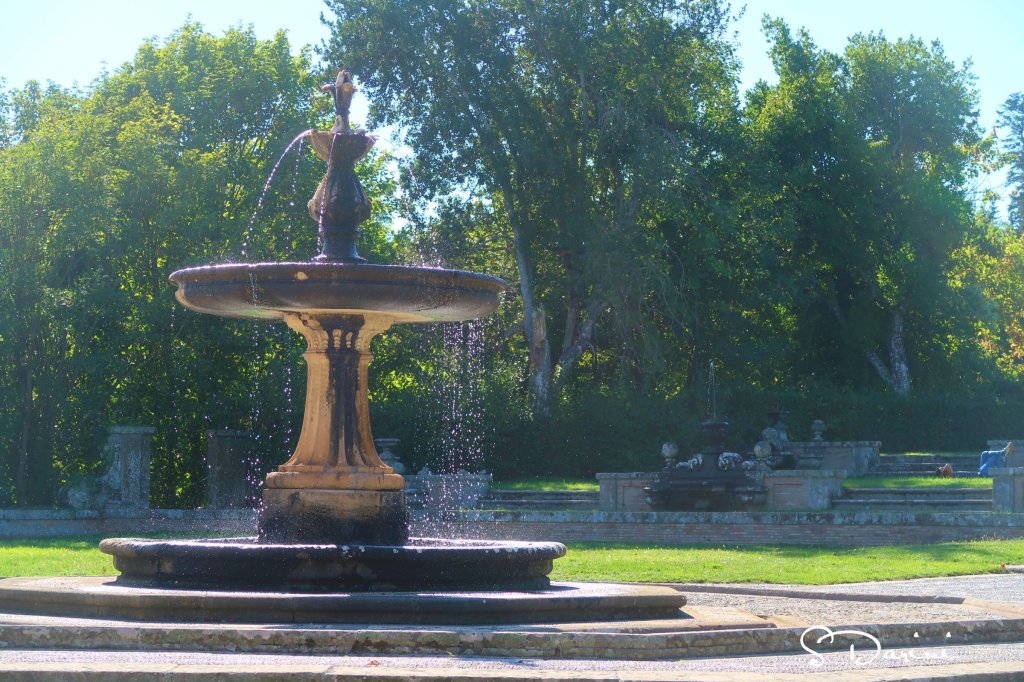 Giunti alla fine della visita interna, una porta conduce al bosco che circonda il palazzo. Attraverso una scala di pietra si arriva a una imponente fontana ed ancora al casino di caccia. Insomma, la parte esterna del palazzo con il suo parco rende ancora di più l’idea di quanto fosse importante questa famiglia.