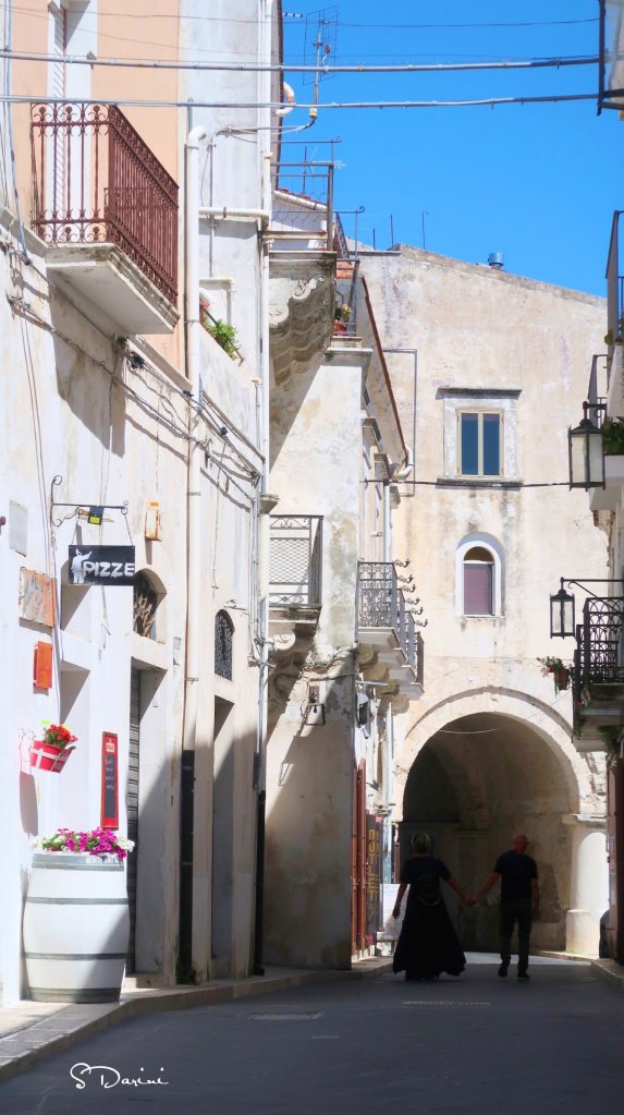 Sono tante le emozioni che si possono vivere in luoghi come questi. È lento l’andar per le strade dove a malapena riescono a passare due automobili. È sorprendente attraversare la foresta umbra dove alberi altissimi e fitti hanno formato, nei secoli, reti di rami intrecciati che creano chilometri e chilometri di strade ombreggiate e piacevolmente fresche. È immensità il mare che si colora di rosa la sera, così come il borgo di Monte Sant’Angelo, la cui storia si perde nella notte dei tempi. Monte San’Angelo con il suo santuario rappresenta il luogo più significativo della storia religiosa e meta obbligatoria dei pellegrinaggi micaelici.
