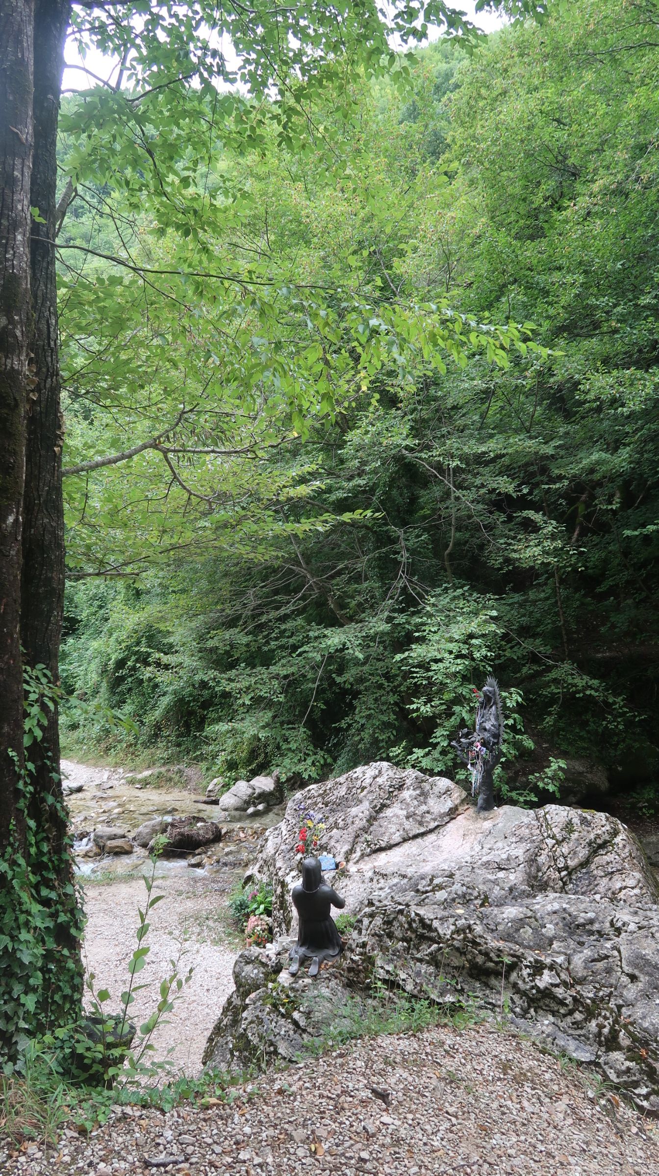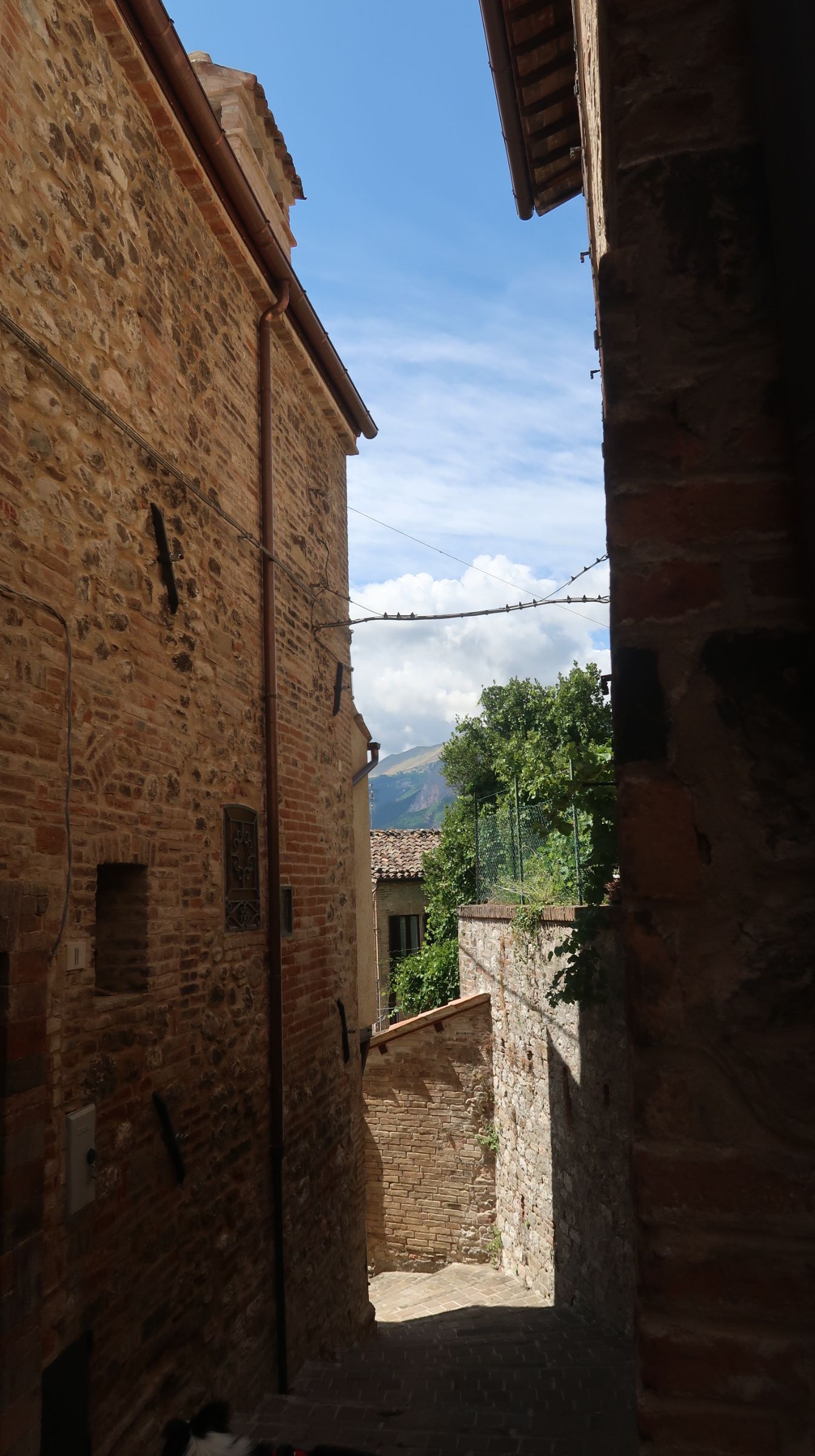 Dopo aver partecipato a una parte di messa e un giretto all’esterno per respirare un po di aria fresca e godere del rumoroso fragore delle acque dell’Ambro che scorrono, ci dirigiamo verso il borgo di Montefortino.