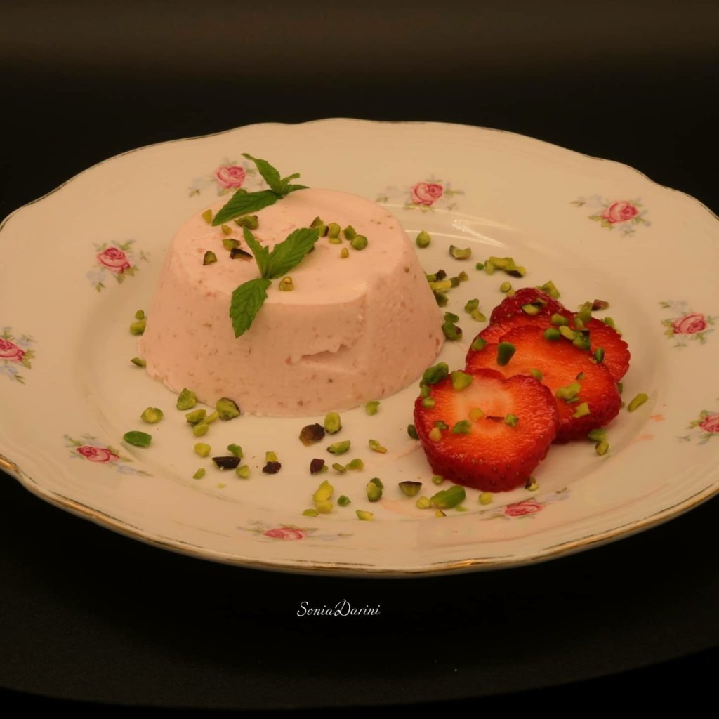In una bacinella piena di acqua fredda ammollare i fogli di colla di pesce. In un pentolino scaldare la panna , il latte e lo zucchero. Mescolare e togliere dal fuoco poco prima che inizia a bollire. Aggiungere le fragole tritate con il mixer ad immersione e i fogli di colla di pesce strizzati dall’acqua, continuare a mescolare. Versare negli stampini e far freddare,prima a temperatura ambiente ,poi in frigo. Servire con guarnizione a vostro piacere.