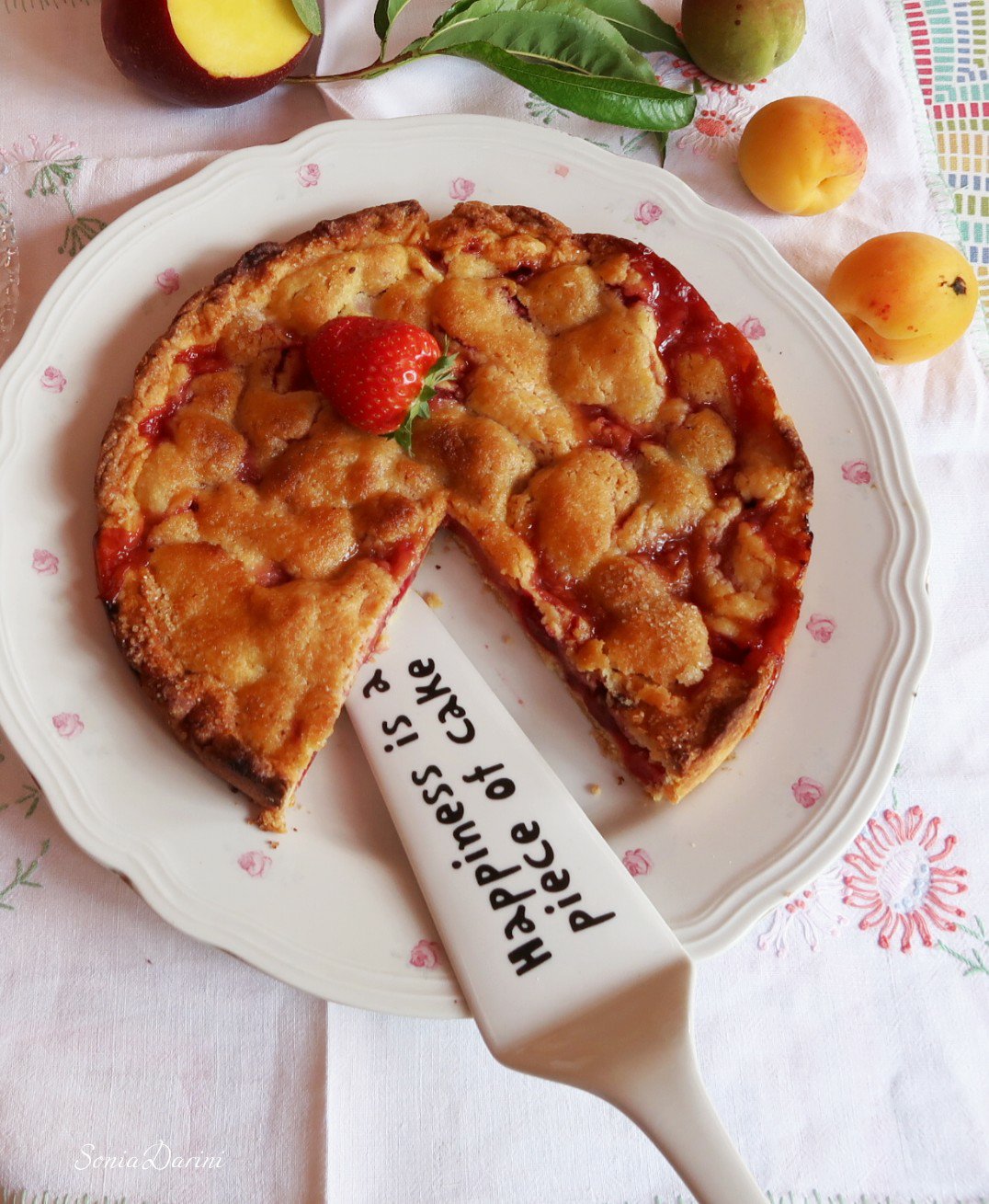 Succede in un pomeriggio piovoso. In cucina c’è frutta da smaltire, frutta succosa, dolce, colorata e soprattutto di stagione. Mi viene in mente la famosa APPLE PIE, perché non sostituire il ripieno di mele a quello di golosa frutta di stagione?!