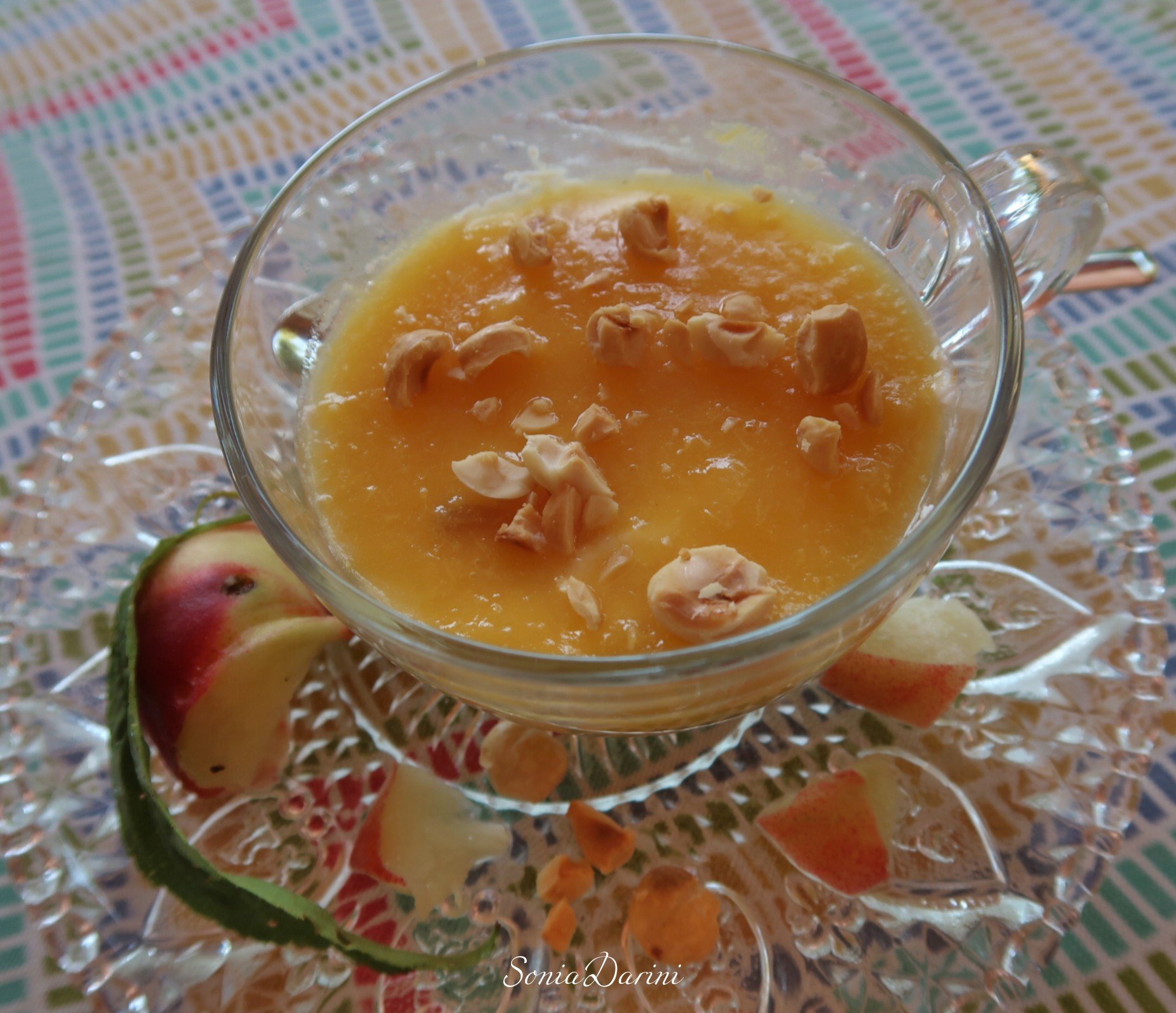 - Per salsa : 4 pesche, 2 cucchiai zucchero di canna, 2 cucchiai zucchero semolato, 1 cucchiaio succo di limone