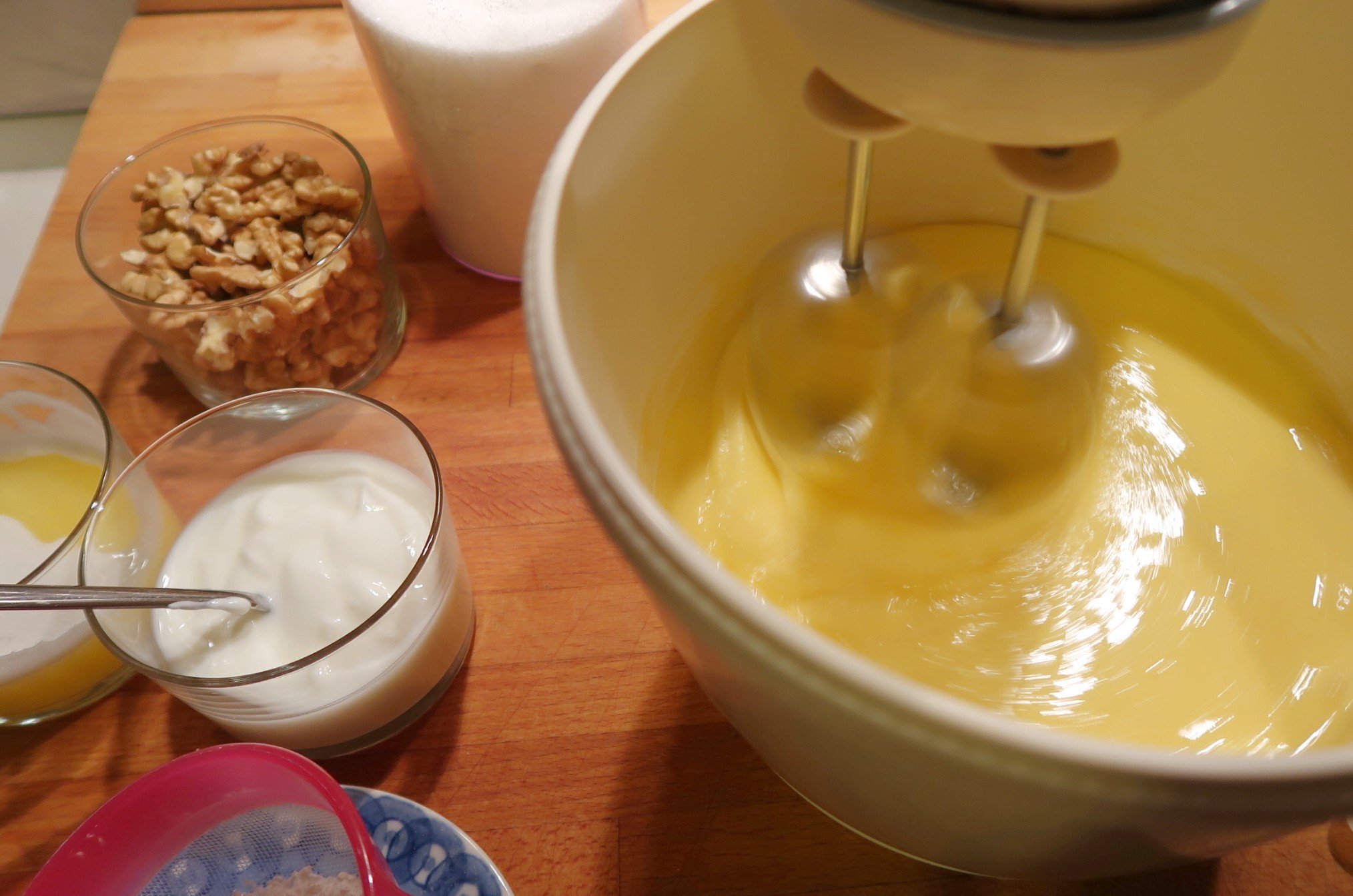 Sbattere in una planetaria le uova con lo zucchero, aggiungendo mano a mano tutti gli altri ingredienti elencati. Versare il composto ottenuto in 2 stampi da plum cake di circa 10×20 ed infornare alla temperatura di 180° per circa 25 minuti.