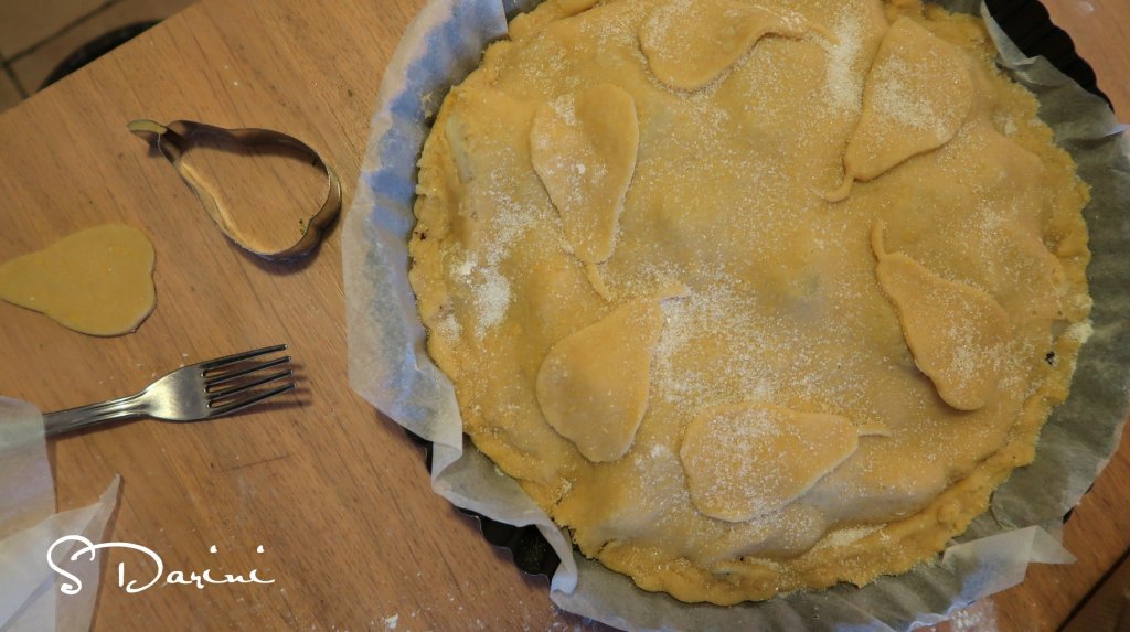 A piacere guarnire con i ritagli di pasta frolla. Io ho usato uno stampino a forma di pera.