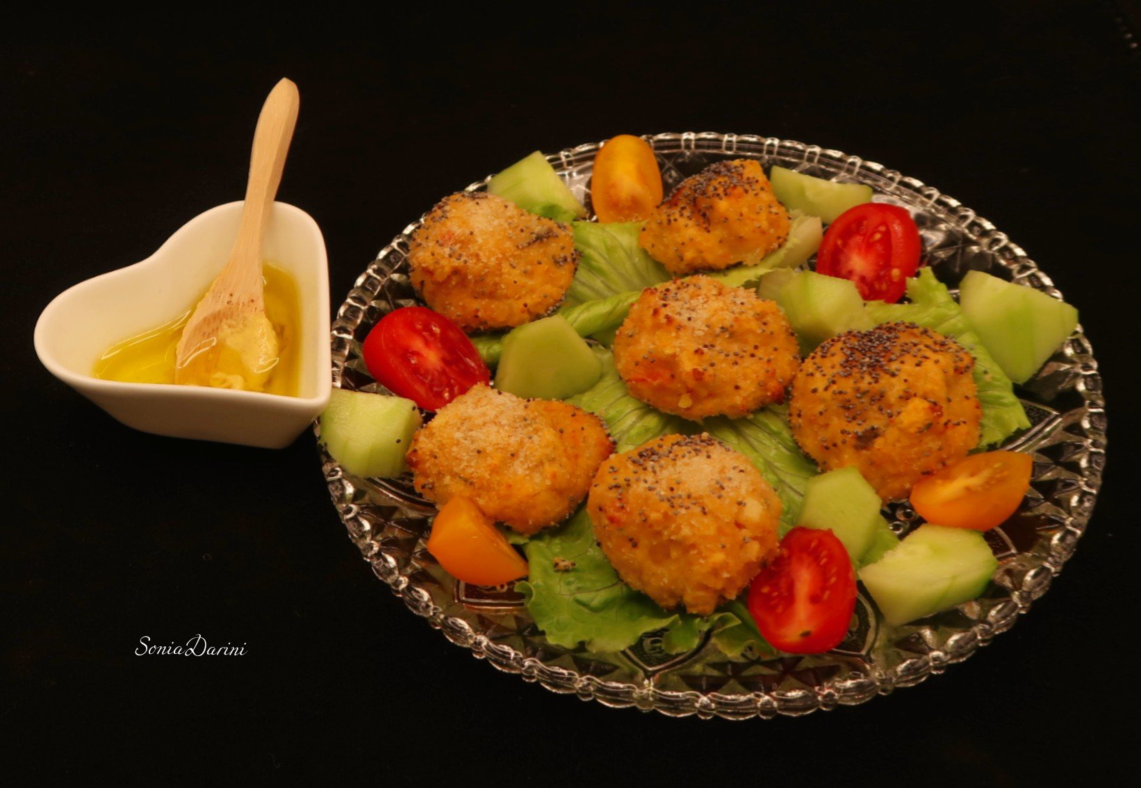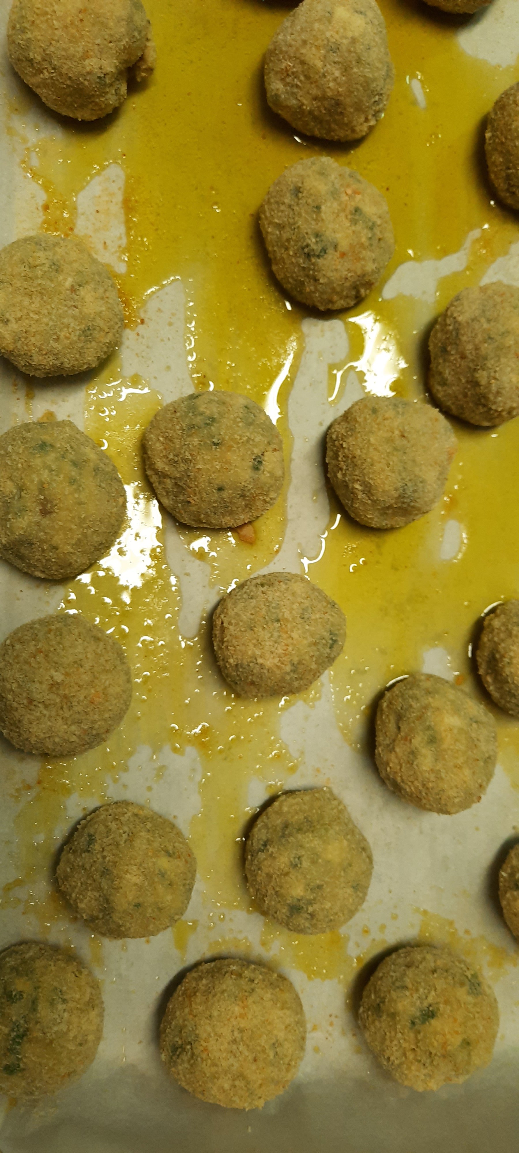 Su una placca forno leggermente oliata, sistemare le polpettine pronte ed infornare a 200° per circa 30 minuti. I primi 10 minuti coperte poi scoprire.