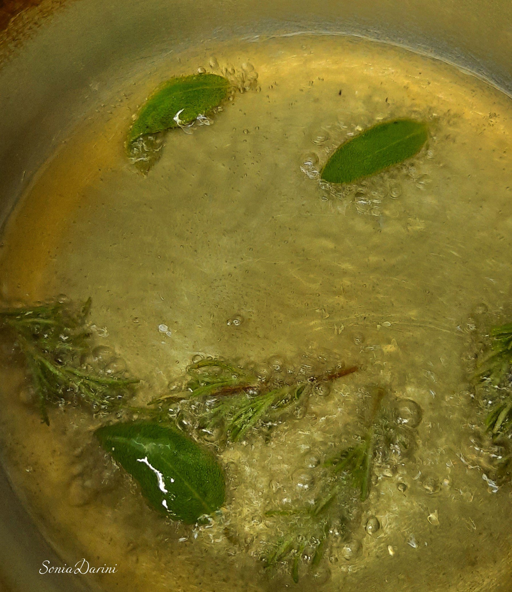 Mi sono divertita ad impattare, guarnendo con foglie di salvia e rosmarino fritto