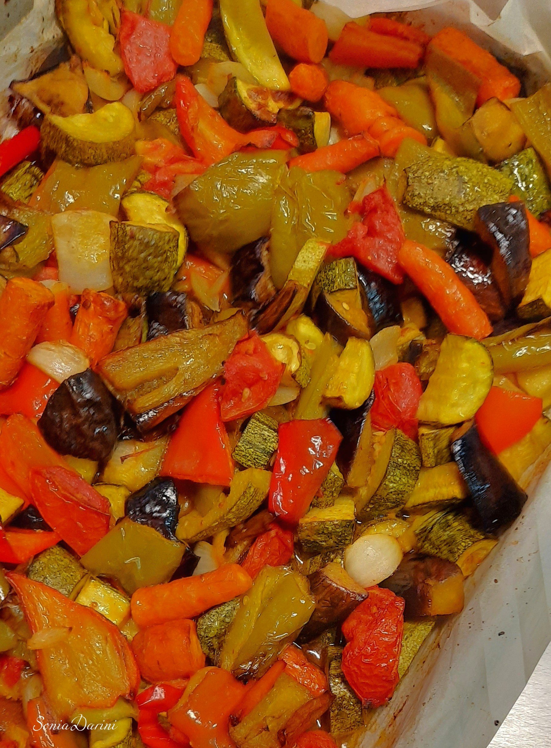 - Verdure tritate sottili a piacere( io ho usato zucchine, melanzane e peperoni)